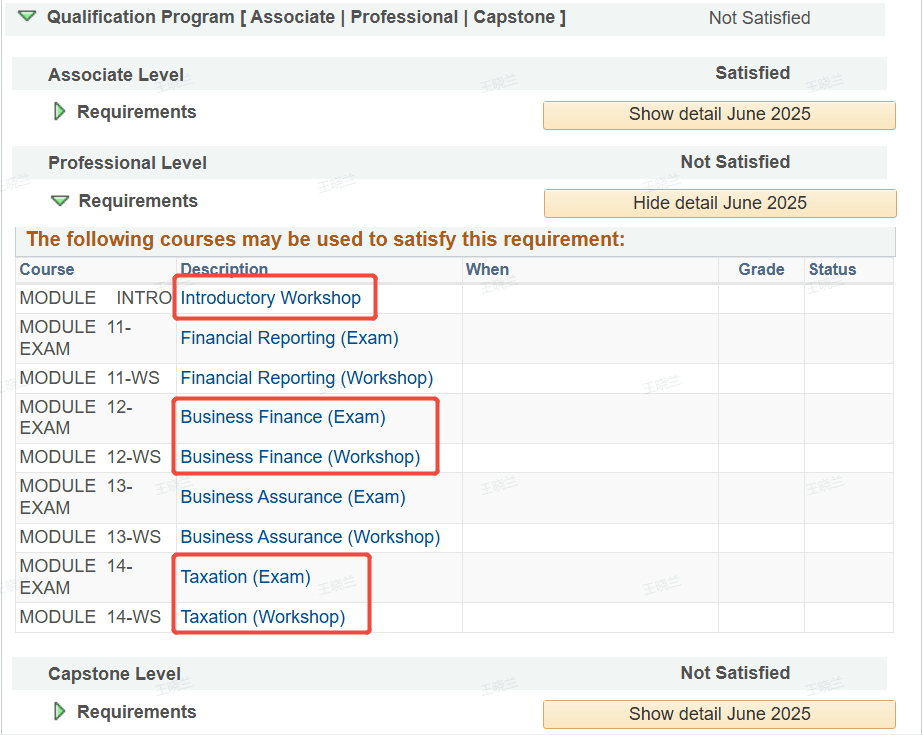 注意:Professional Level中,Introductory Workshop必须选上